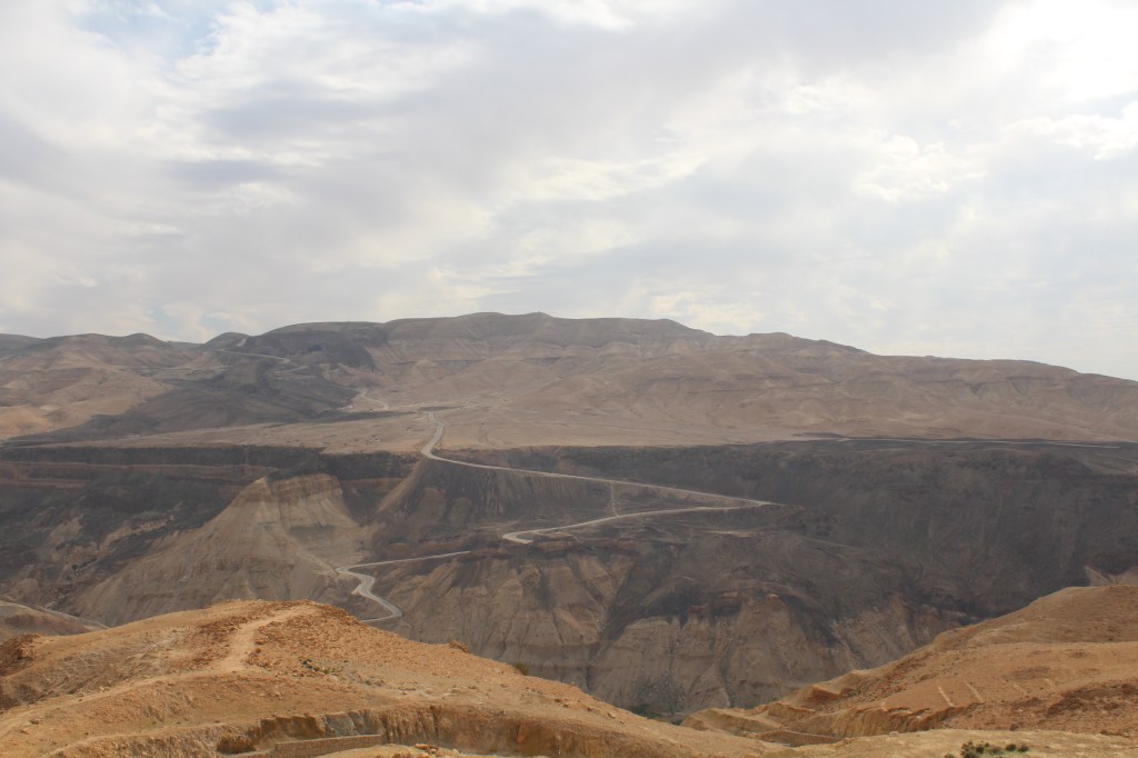 Dalla strada che costeggia il lago salato siamo passati nell’entroterra percorrendo la strada attraverso il Wadi Mujib. Il paesaggio è incredibile grazie alle montagne di roccia che cambia colore e alle profondissime gole che le attraversano.